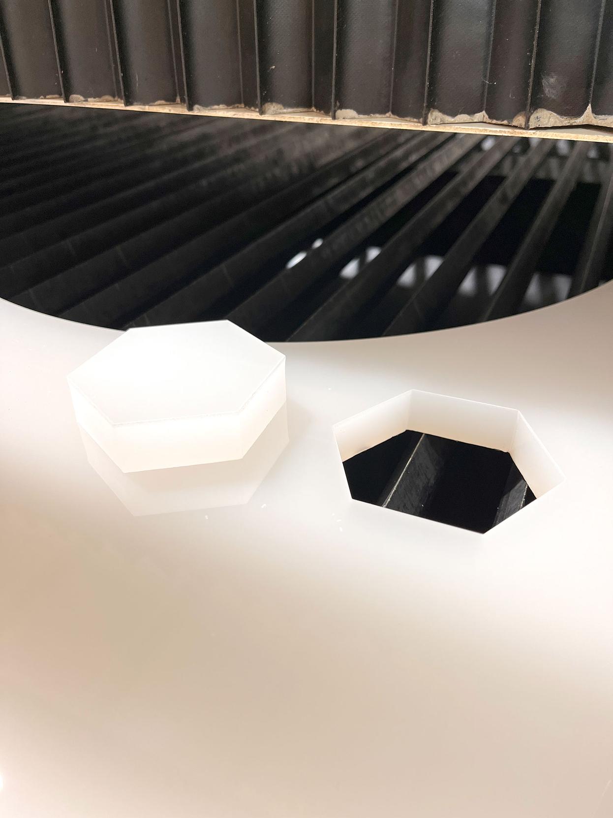 Using our 300 W CO₂ system, we can cut thick acrylic and wood panels in the range of 20–25 mm (in ideal conditions). For the 150 W system, performance is optimized at thinner materials and for finer engraving.