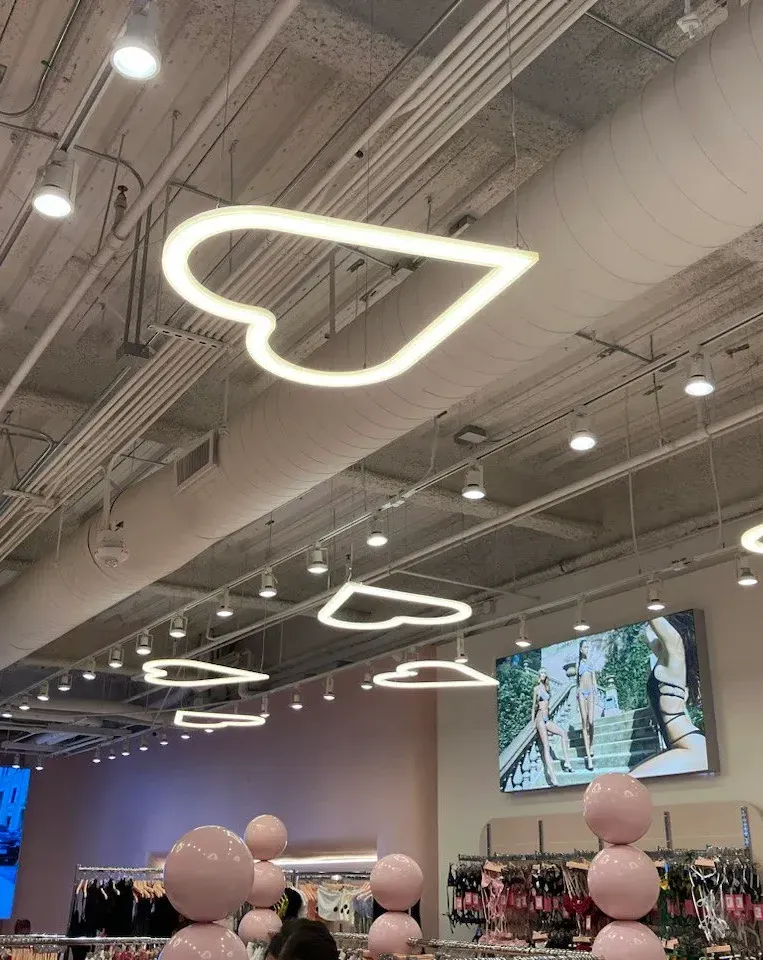 - Heart-shaped and geometric light features for decor and branding